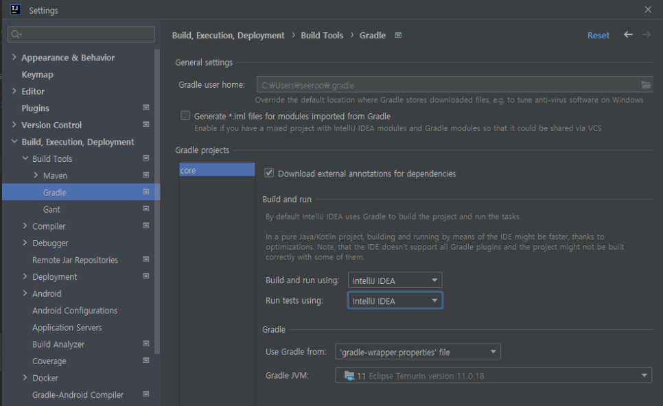 Build,Execution,Deployment -> Gradle -> Gradle JVM 버전 변경.
