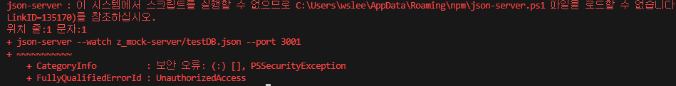 app/z_mock-server/testDB.json 을 생성한 후 아래 명령어를 실행하였다.